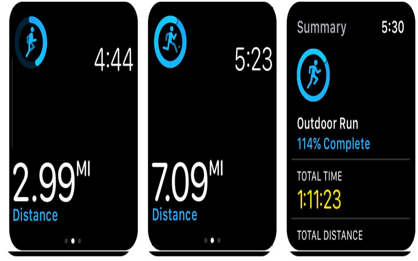 Tant que vous commencez toujours votre entraînement de cette manière et fermez l’anneau bleu avant de terminer votre entraînement, vous pouvez être sûr d’avoir complété votre distance quotidienne.